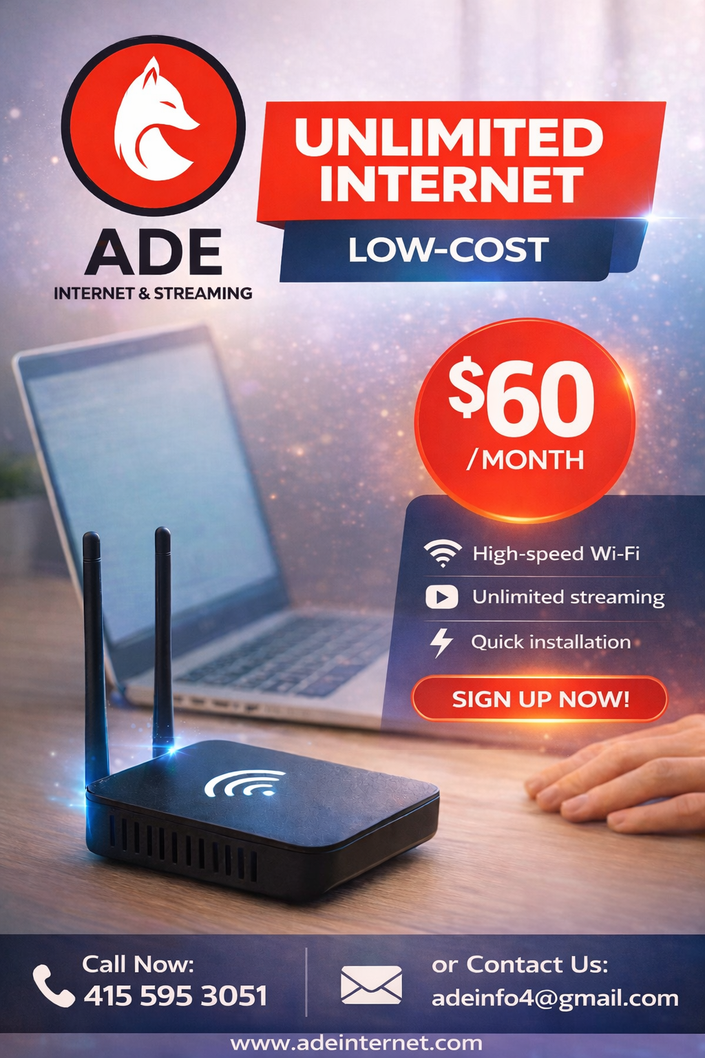 Adeinternet.com specializes in providing low-cost internet solutions tailored to meet the needs of consumers and businesses alike. With a commitment to affordability and quality service, we ensure that you stay connected without breaking the bank.